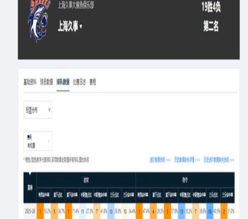 限制對手命中率為47.4%,而數據聯盟平均水平是52.8%,他們低于平均水平5.4個百分點。除此之外,上海男籃限制對手三分命中率暫居聯盟第二,限制對手籃協命中率暫居聯盟榜首。