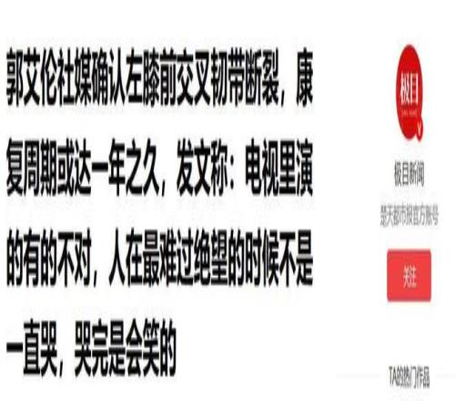 極目新聞|郭艾倫社媒確認左膝前交叉韌帶斷裂,康復周期或達一年之久,發文稱:電視里演的有的不對,人在最難過絕望的時候不是一直哭,哭完是會笑的