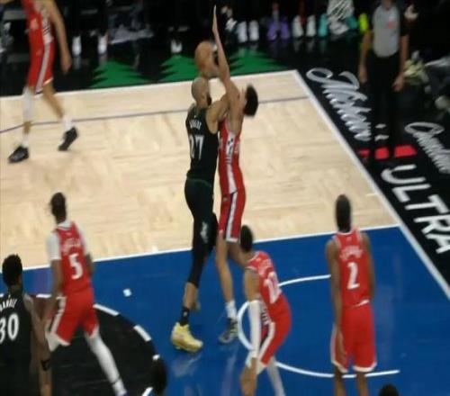 當時比賽里的兩個回合,尼德豪澤面對戈貝爾居然完成了晃人+上籃,然后下一個球,氣不過的戈貝爾要單挑尼德豪澤,結果給了尼德豪澤一肘。
