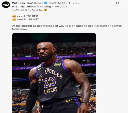 41歲的勒布朗也會迎來多項(xiàng)里程碑的時(shí)刻,他距離12000籃板、12000助攻只差26個(gè)籃板與116次助攻,按照詹姆斯場均7個(gè)助攻來看他只需要17場比賽就超過這兩里程碑。