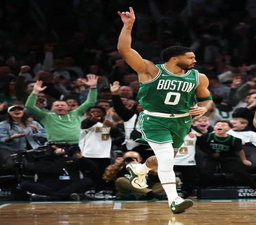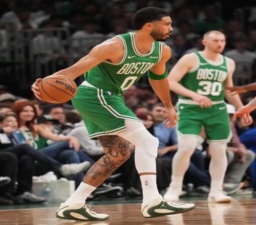 第二節(jié)結(jié)束前,塔圖姆搶下前場籃板同時(shí)補(bǔ)扣成功,他在籃筐上掛了許久,在下落時(shí)有意用用左腳先落地。下個(gè)回合,塔圖姆在底角后撤步三分出手命中,北岸花園的球迷爆發(fā)出全場最大的一次歡呼聲,塔圖姆用這記三分宣告了自己的正式歸來。