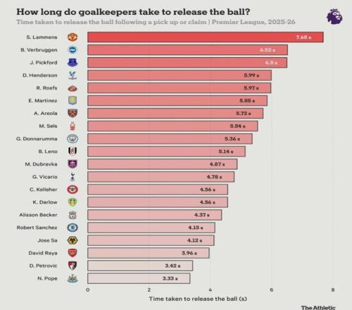 所以這個數(shù)據(jù)一定程度上能回應有些好事者所謂拉亞拿球浪費時間的說法,實際上,阿森納的進攻是從門將發(fā)起的,很多時候拉亞接球后就在觀察隊友跑位,經常快速手拋球發(fā)起進攻。