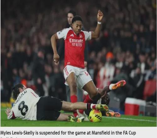 報道稱,19歲的斯凱利在足總杯的第三輪和第四輪比賽中均拿到了黃牌,因此本場比賽他將停賽。