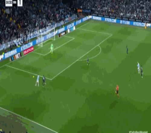 第25分鐘,斯韋德貝里助攻,博爾哈搶點扳平比分,皇馬1-1
