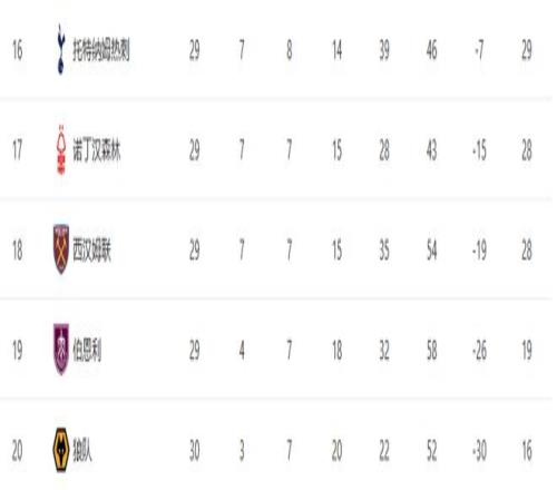 目前在積分榜上,熱刺排名第16位,僅領先第18名西漢姆1分。以球隊現在的狀態來看,被身后的諾丁漢森林和西漢姆反超,似乎只是時間問題。