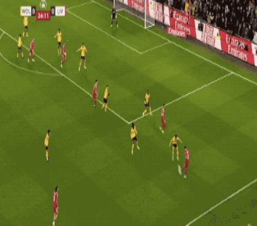 第53分鐘,羅伯遜的傳球正好越過狼隊的防線,薩拉赫包抄破門,裁判第一時間十一越位在先,VAR介入,進球有效,薩拉赫連續兩場比賽破門得分。