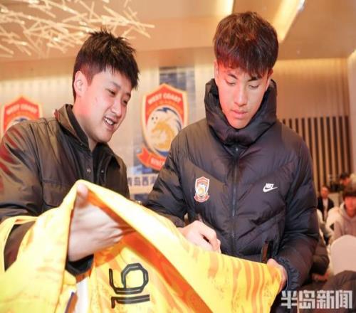 在出征儀式上,主教練鄭智和U23門將李昊依然人氣高漲,鄭智與李昊也是耐心滿足了球迷們的合影和簽名需求。另外,西海岸新賽季戰袍的胸前廣告位增加了“金沙灘啤酒城”的字樣,背后廣告位則增加了“靈山島、竹岔島”的字樣,足球也將逐漸成為西海岸新區的一張名片。