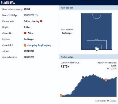 出生于2006年10月的門將姚浩洋,身高達到1米95,上賽季租借重慶銅梁龍期間有著出色的發揮,也是球隊沖超的功臣。要知道早在2024年,18歲的姚浩洋就已經在外租時當選中甲最佳門將。所以為了他花費700萬元人民幣,也是重慶銅梁龍求賢若渴。